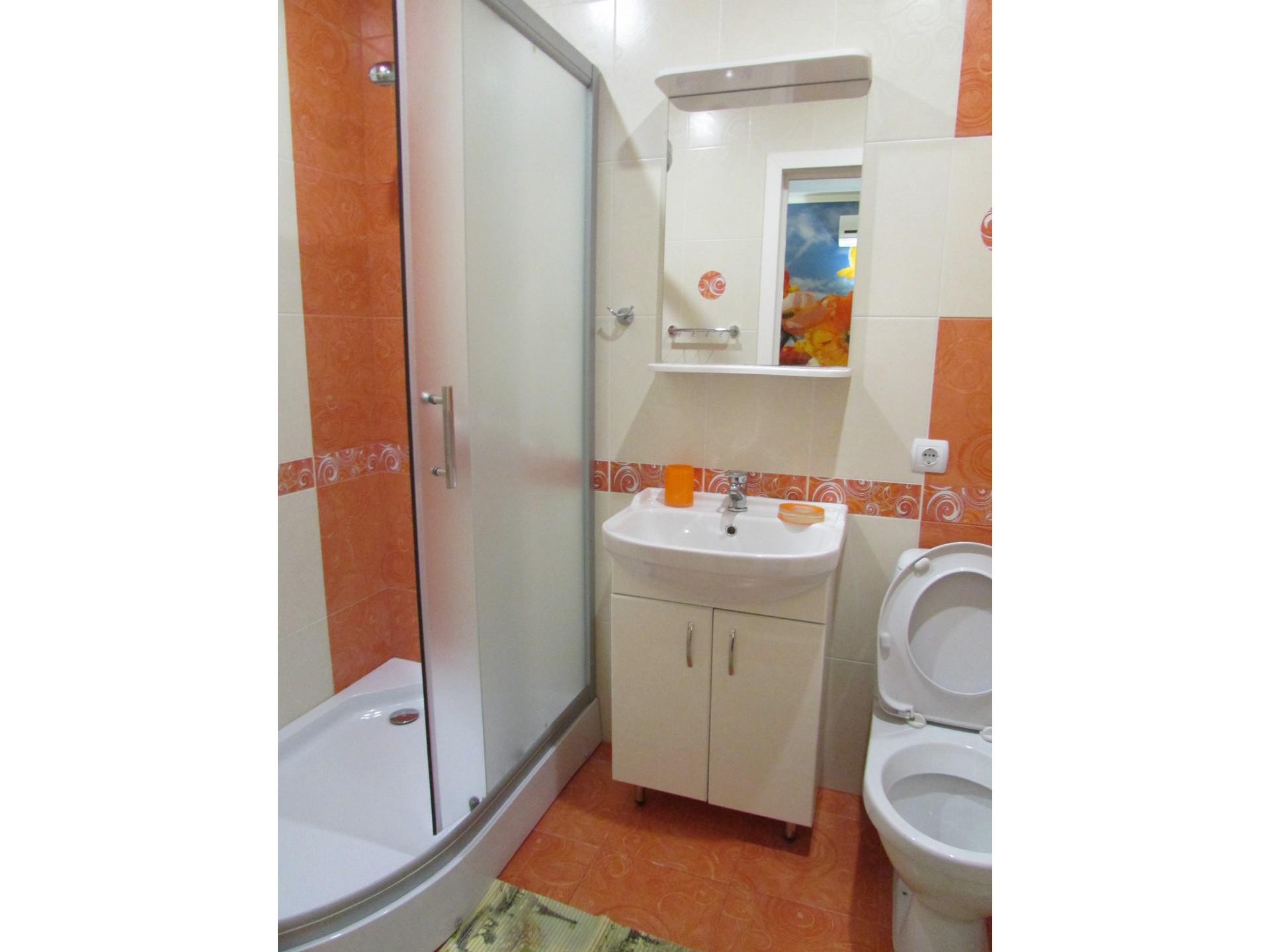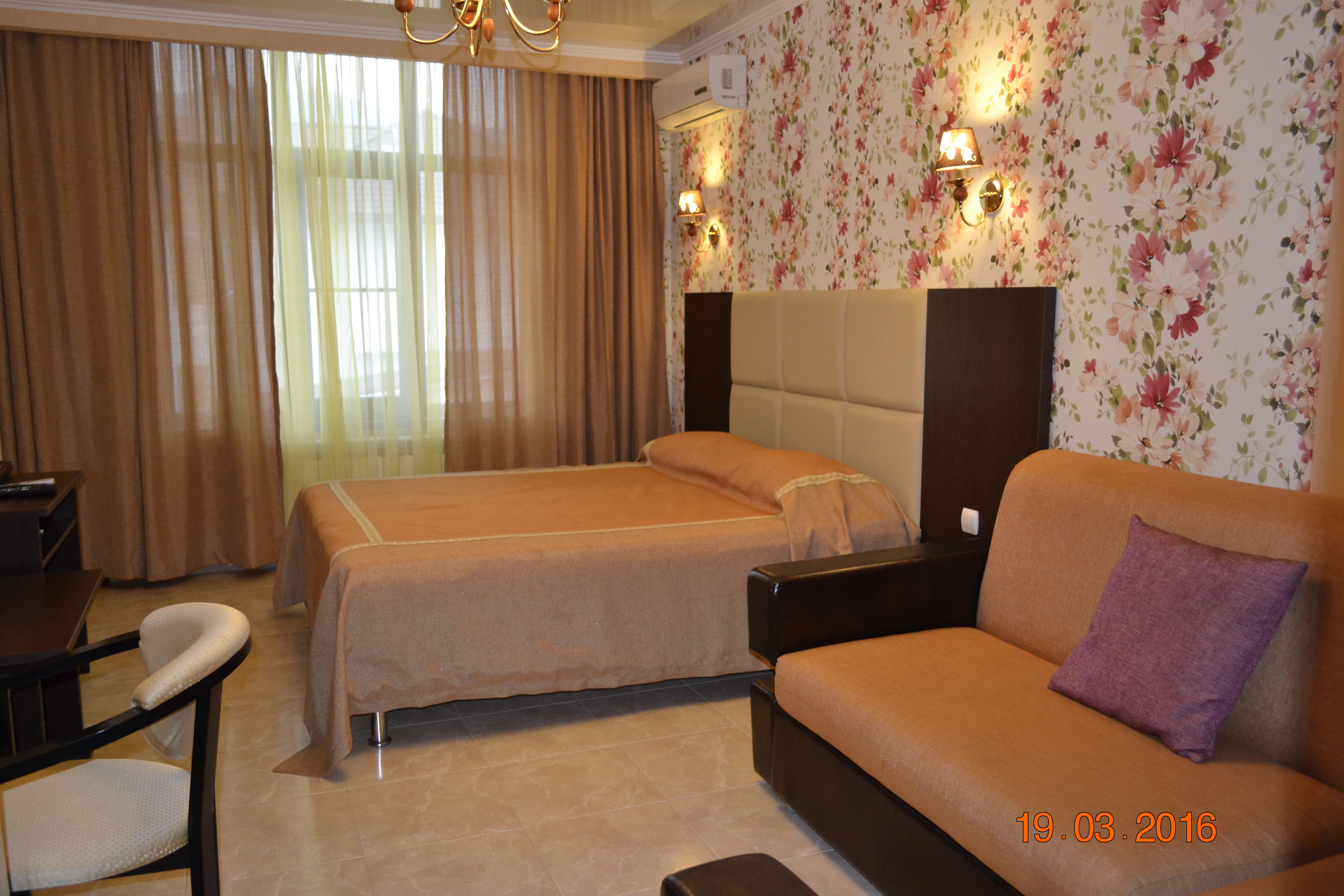 В номере стандарт: туалет, умывальник, душ, телевизор, холодильник, кондиционер. Подключен Wi-Fi бесплатно.